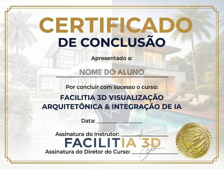 Ao concluir o curso, você recebe um certificado que valida seu conhecimento em modelagem e renderização 3D, aumentando sua credibilidade, valorizando seu portfólio e trazendo mais segurança para seus clientes.